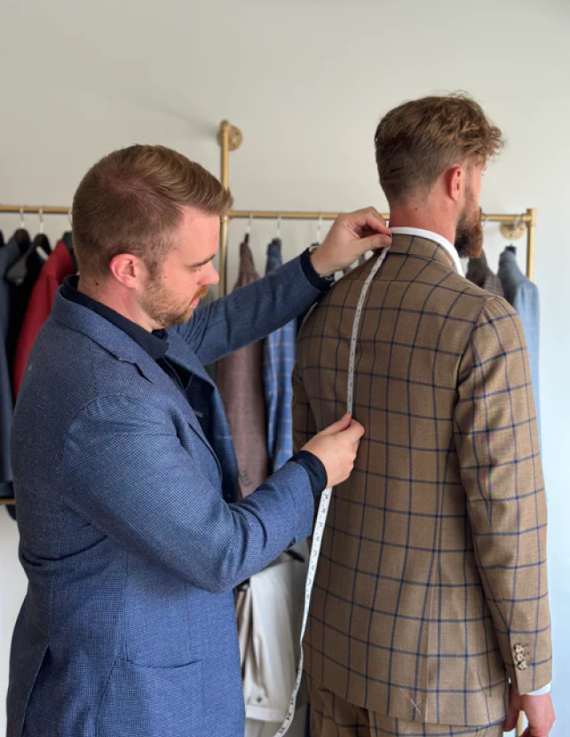 Whether you customize a standard size, schedule a virtual fitting, or come into our showroom, every garment starts with getting the perfect fit.